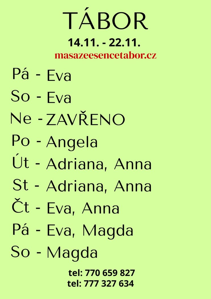 | Pátek | Na dotaz |