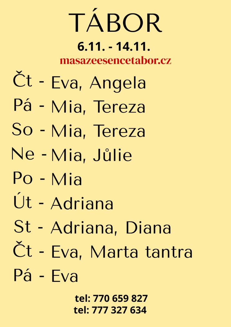 | Čtvrtek | Na dotaz |